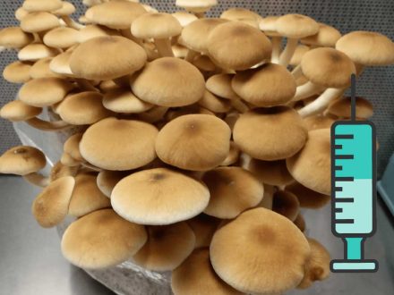 ვარდისფერი კალმახა სოკოს Pink Oyster თხევადი მიცელიუმი (Liquid Culture). გამოიყენება სოკოს მოსაყვანად სხვადასხვა მასალებში.
